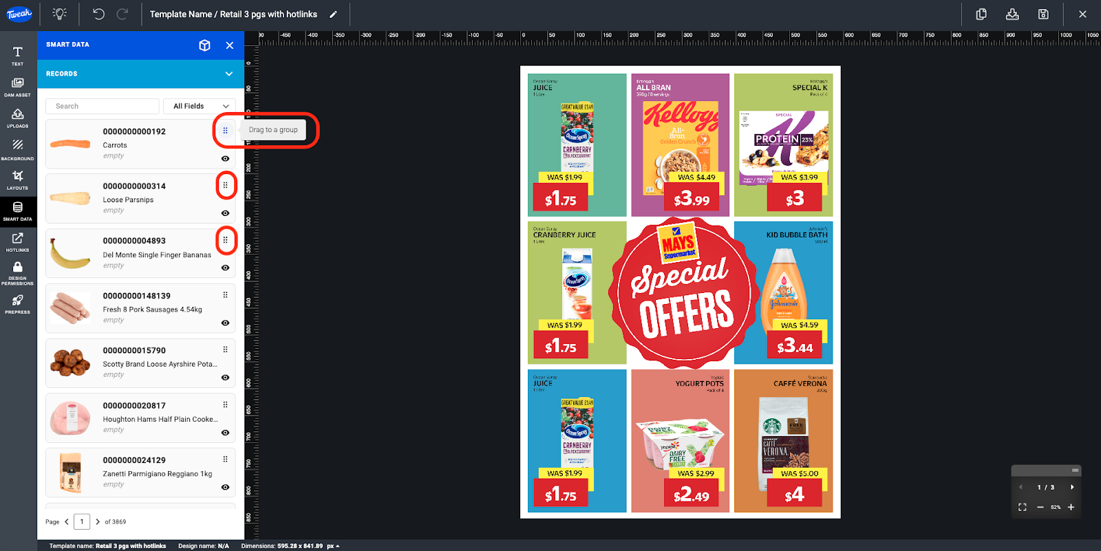 These Smart Data Records allow you to add and/or replace the elements on your template with the data from your data source. This allows you to create multiple designs that you can share with your customers.